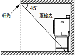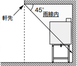 機器が雨線内(軒先から 45°の範囲内)に収まる場合は、本体保護カバーを取り付けずに使用可能です。